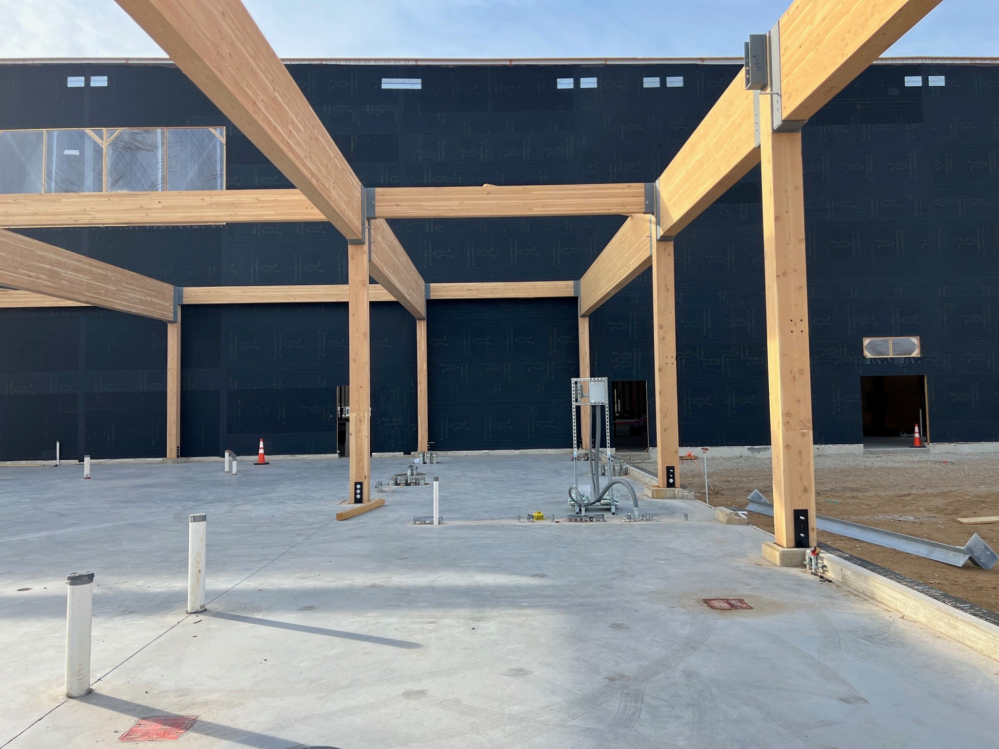 PanelShield SA protected the mass timber from moisture damage during transportation and construction, ensuring the panels arrived dry before being integrated into the structure. Its durability allows it to withstand aggressive handling, fast installation, and tough on-site conditions, while simultaneously drying the mass timber substrate.