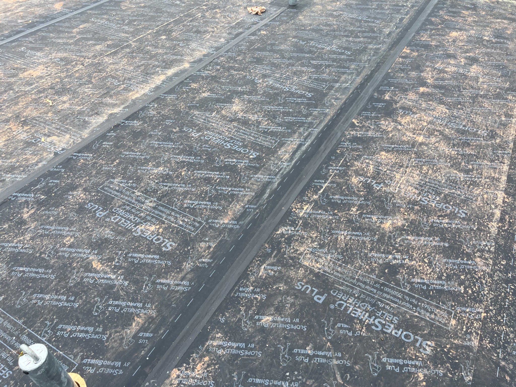 As part of Micron’s expansion at its Manassas, VA plant, the new mass timber building is constructed out of glulam posts and beams, as well as glulam branches around the perimeter. Protecting the expansive mass timber roof from moisture infiltration is over 60,000 sq.ft. of VaproShield’s SlopeShield Plus SA air barrier and permeable vapor retarder membrane. SlopeShield Plus SA protects the mass timber from bulk water intrusion and concurrently dries mass timber through moisture vapor diffusion. Once the mass timber dries, it will not get wetter and the mass timber deck is protected from future rain events. SlopeShield Plus SA is extremely durable to foot traffic and heavy equipment, it can withstand 180 days of UV and climate exposure, helping contractors stay on schedule despite inclement weather events.