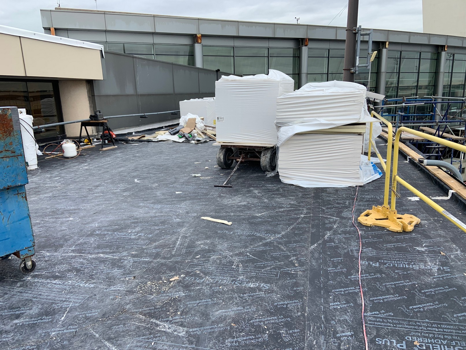 - Withstand heavy foot traffic and construction machinery during final PVC roof installation
