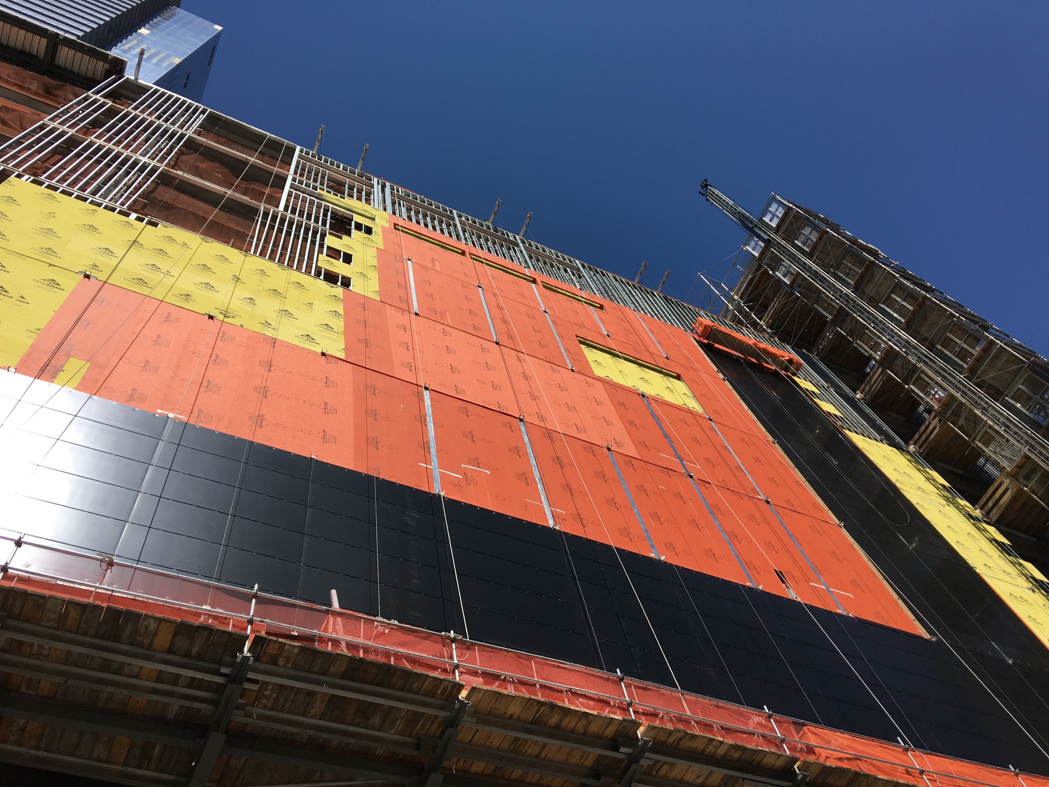 Over 40,000 sq.ft. of WrapShield SA Self-Adhered WRB/Air Barrier is being installed on Building #11 of the Hudson Yards Development in New York, New York.