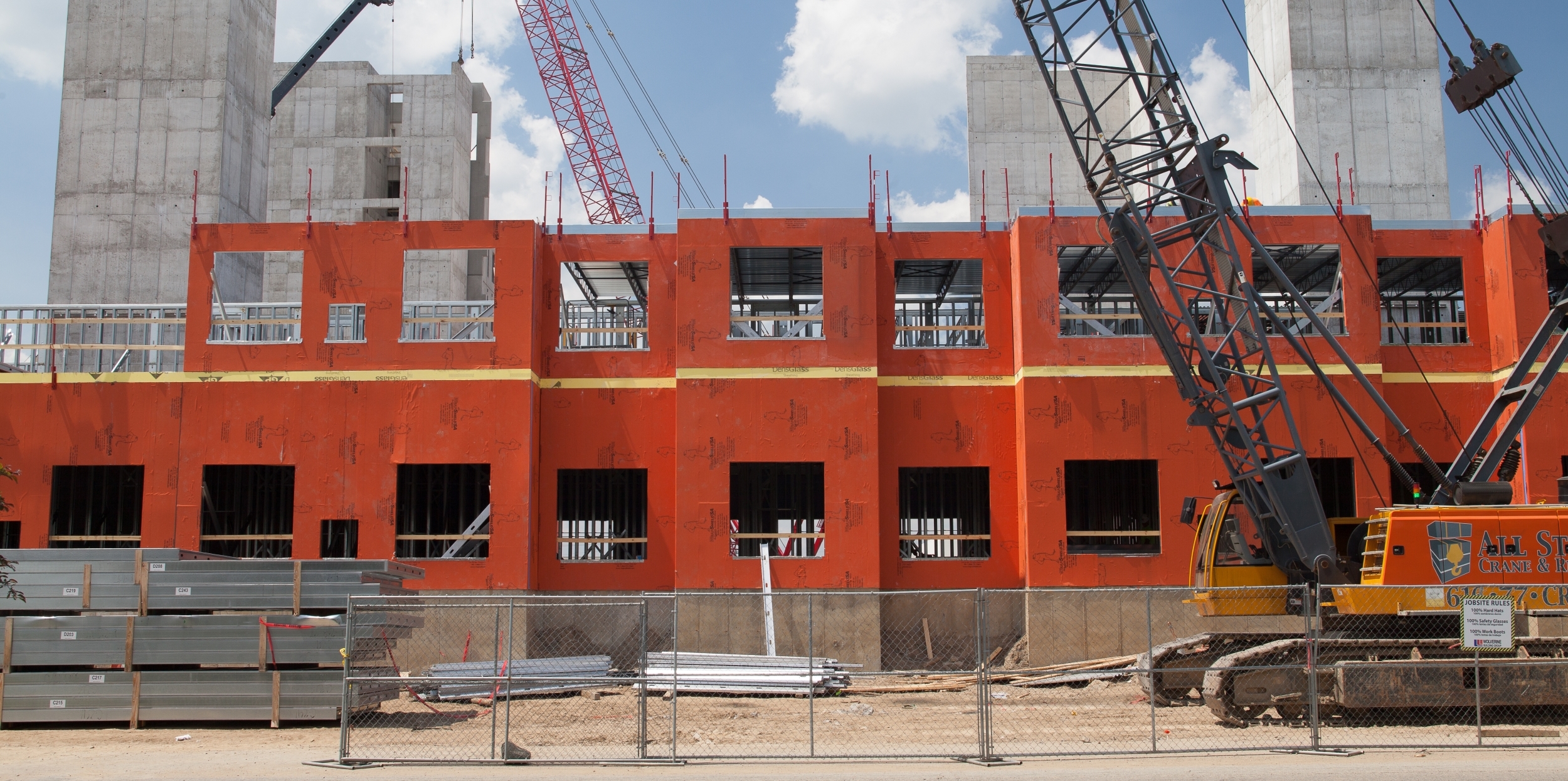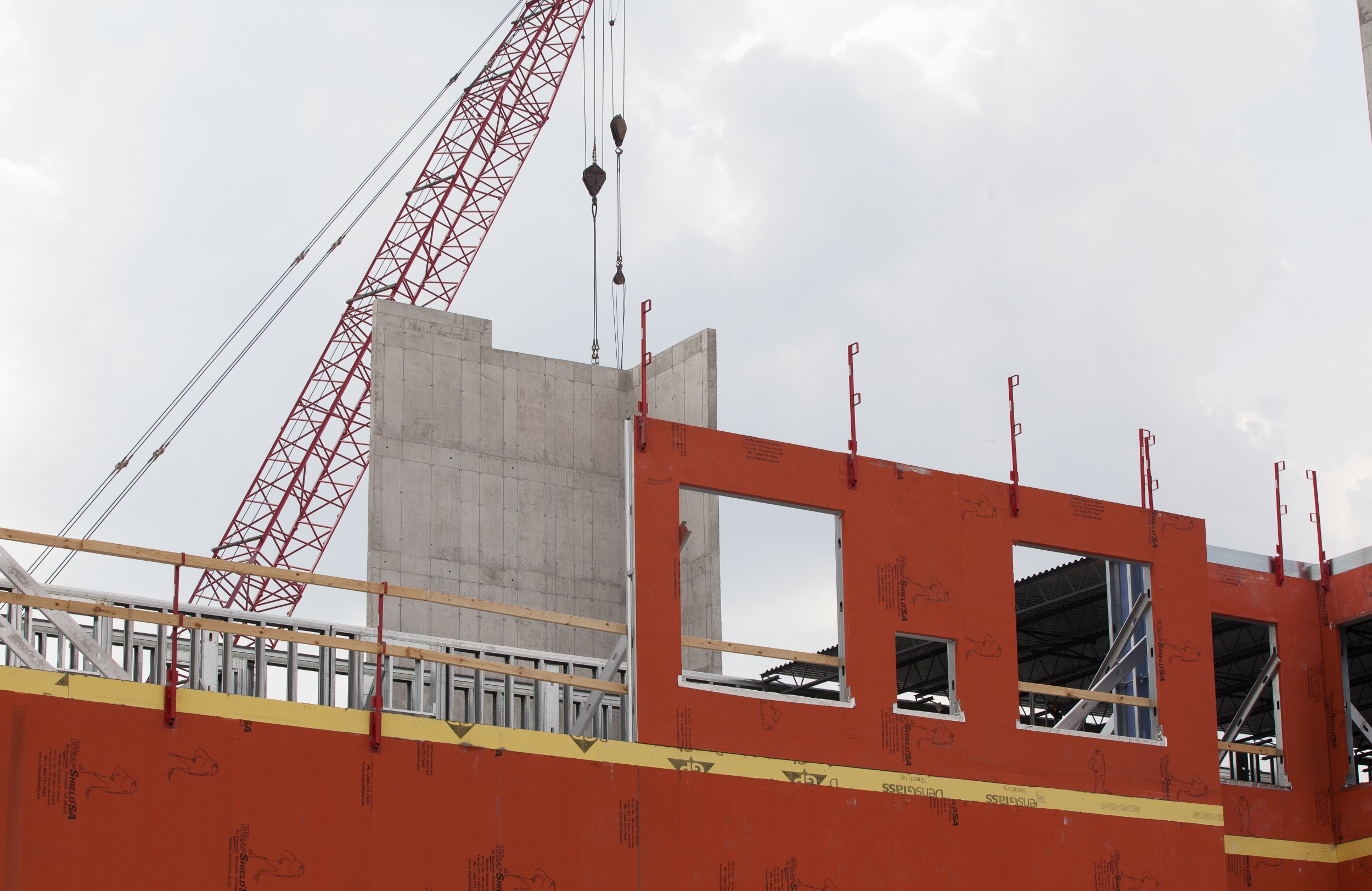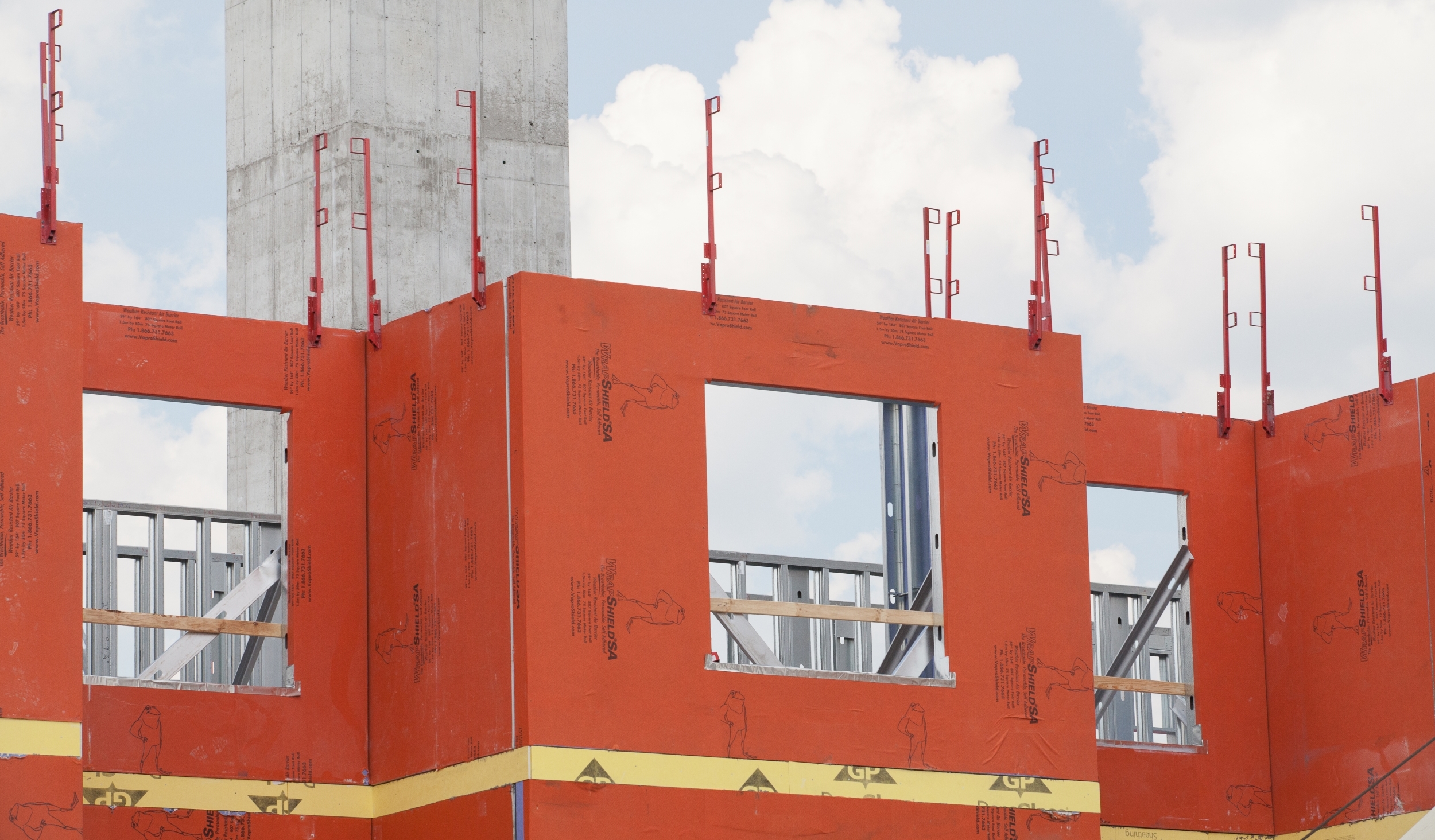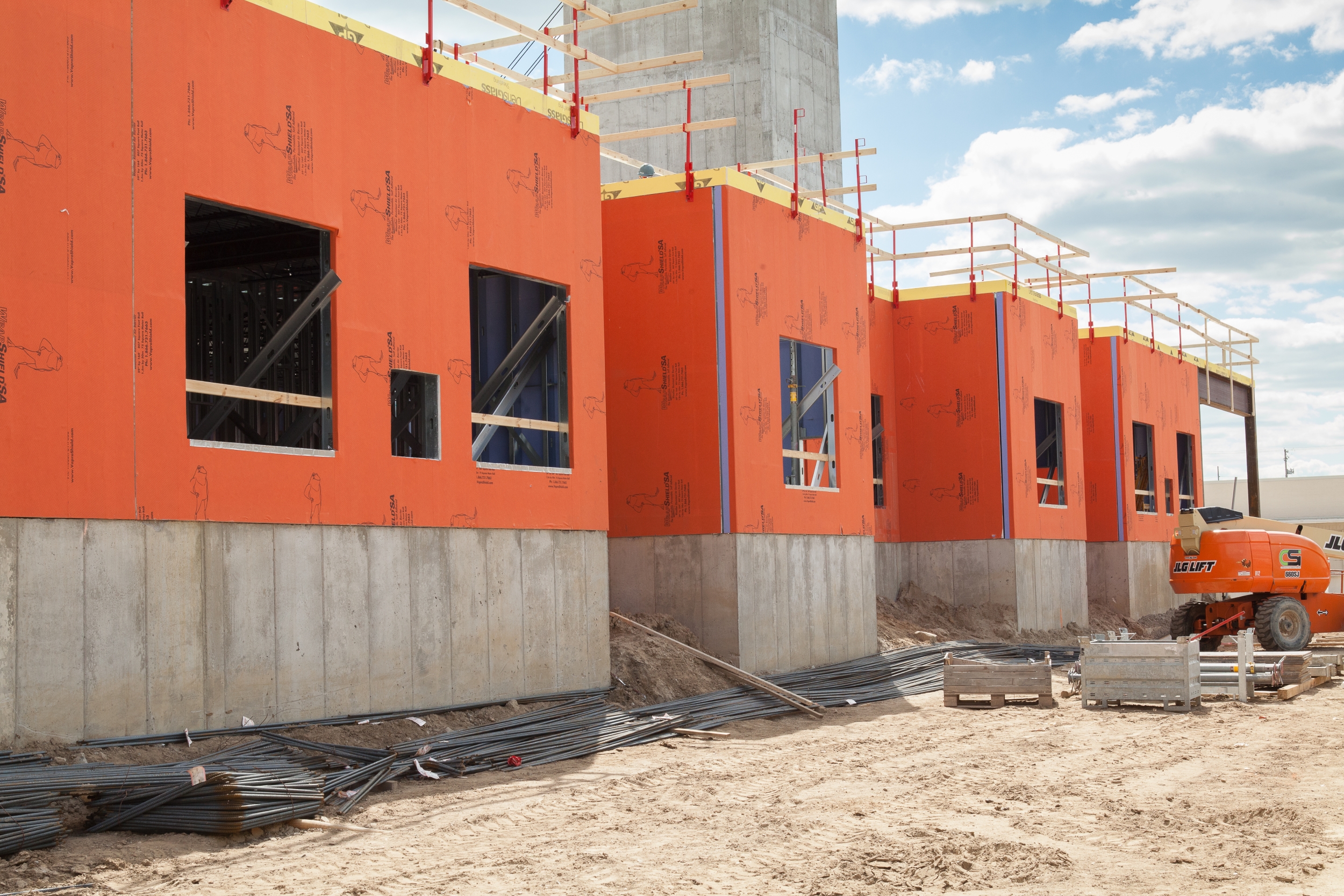 The panelized construction began in North Carolina where WrapShield SA Self-Adhered was installed to the sheathing and then shipped to Lansing.