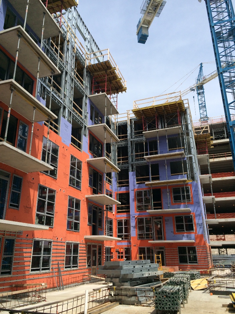150,000 sq. ft. of WrapShield SA Self-Adhered Water Resistive Vapor Permeable Air Barrier Sheet was installed on The Radius at the Banks Mixed-Use Building.