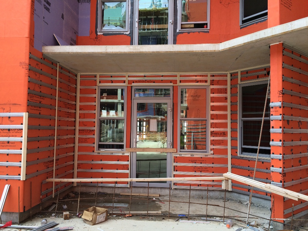 VaproShims used under horizontal cladding attachment components create a small, effective ¼” rain screen cavity, allowing for unimpeded vertical drainage of moisture away from the building envelope.
