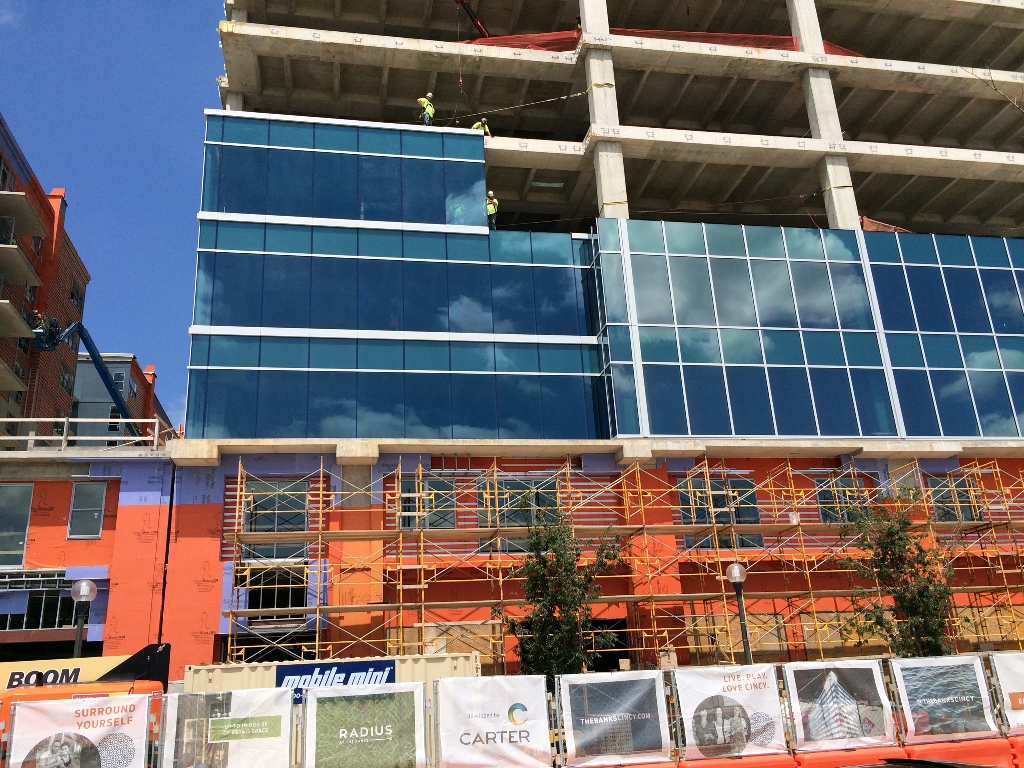 The Radius at the Banks project in Cincinnati switched to WrapShield SA Self-Adhered Water Resistive Vapor Permeable Air Barrier Membrane, citing the product’s versatility and ability to be installed in temperatures that were too cold for the originally specified fluid-applied barrier. The Radius at the Banks contractor noted WrapShield SA Self-Adhered worked in conjunction with the construction schedule because the product does not require special installation equipment, offered labor savings and there was no overspray in the windy, high-rise downtown conditions (because the product is self-adhered).